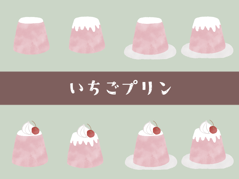 トッピングあり、なしなど様々なプリンのイラスト素材を用意しました。