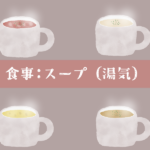ミネストローネ、コーンポタージュ、ジャガイモのスープ、玉ねぎのスープなどのイラスト素材を用意しました。